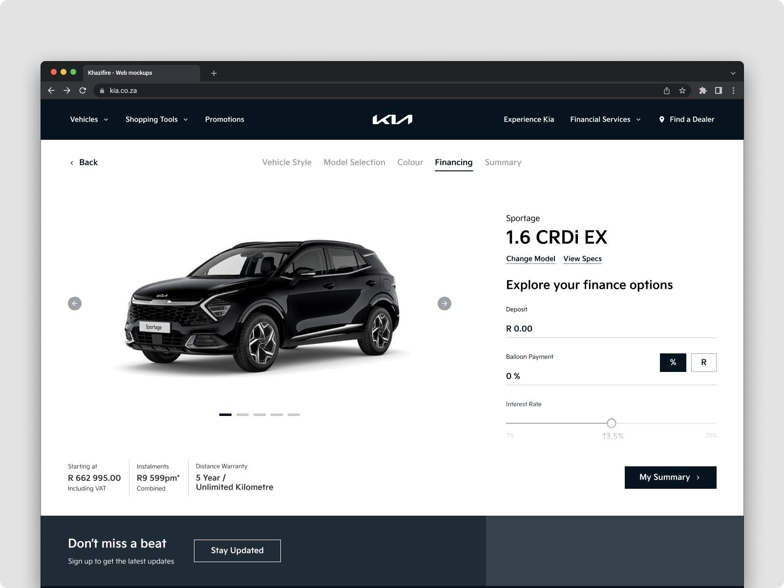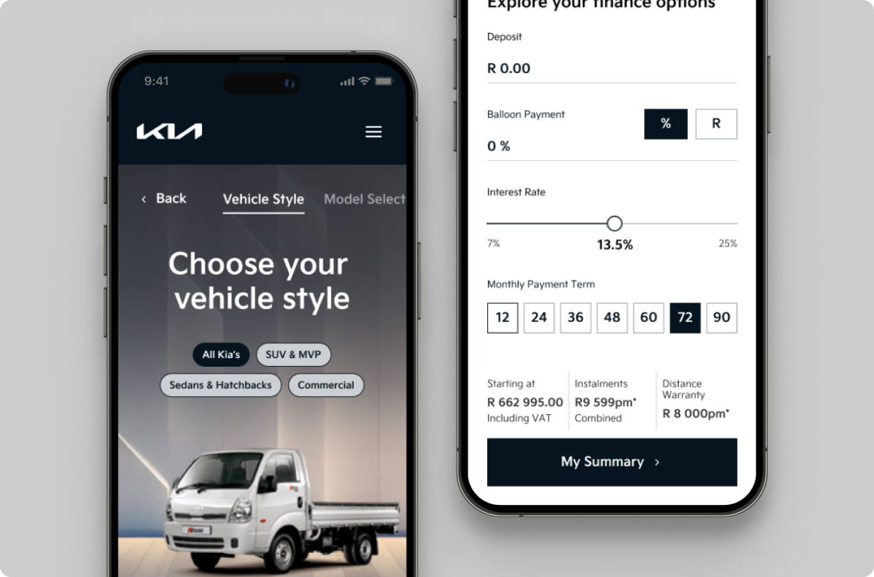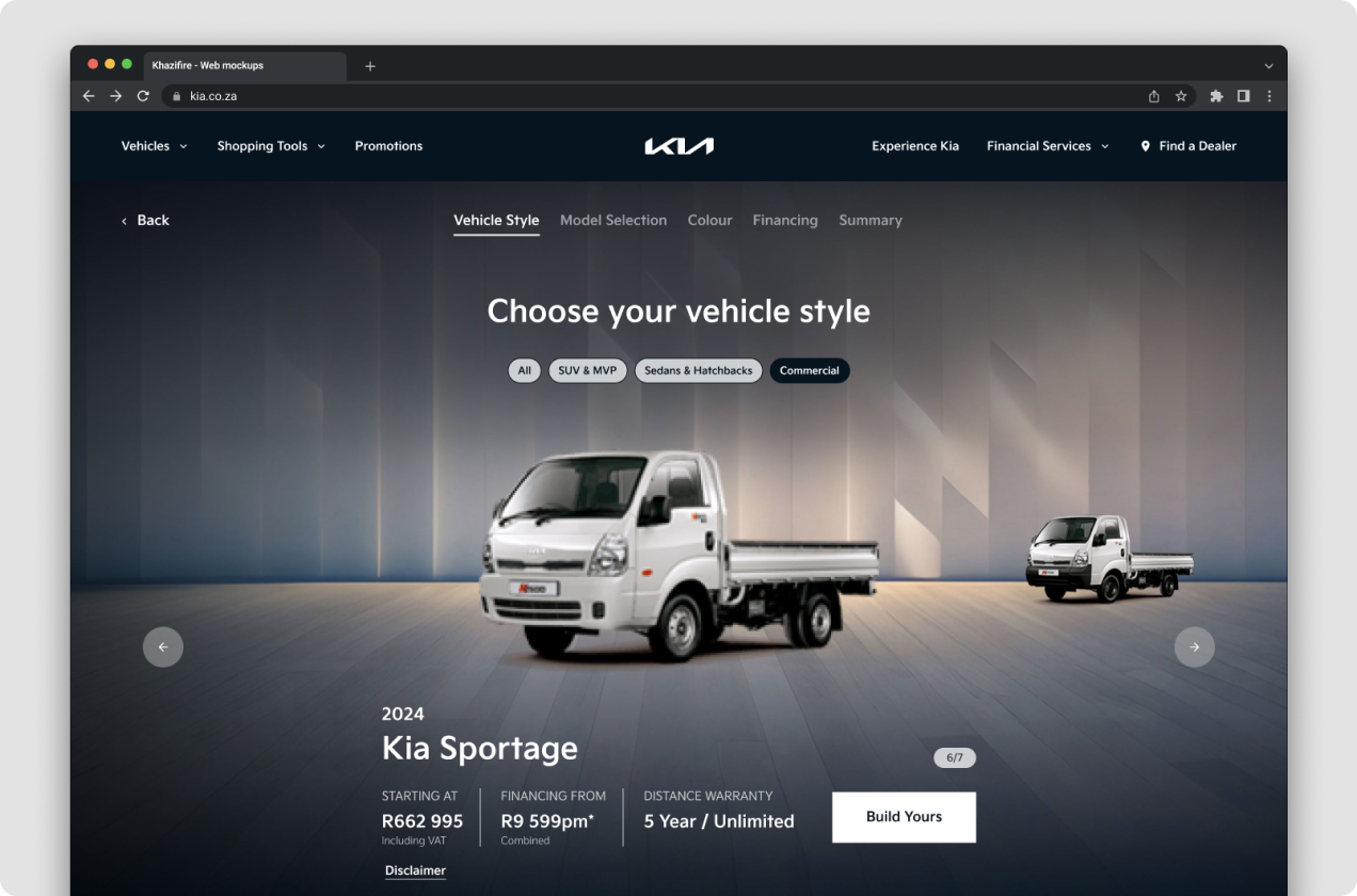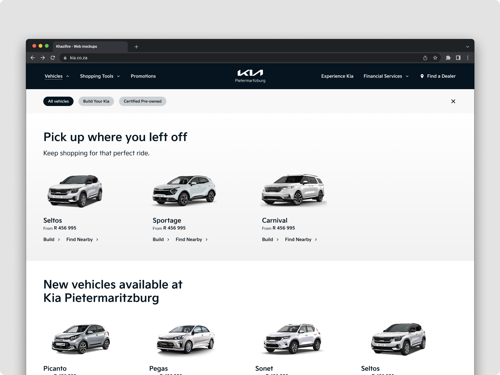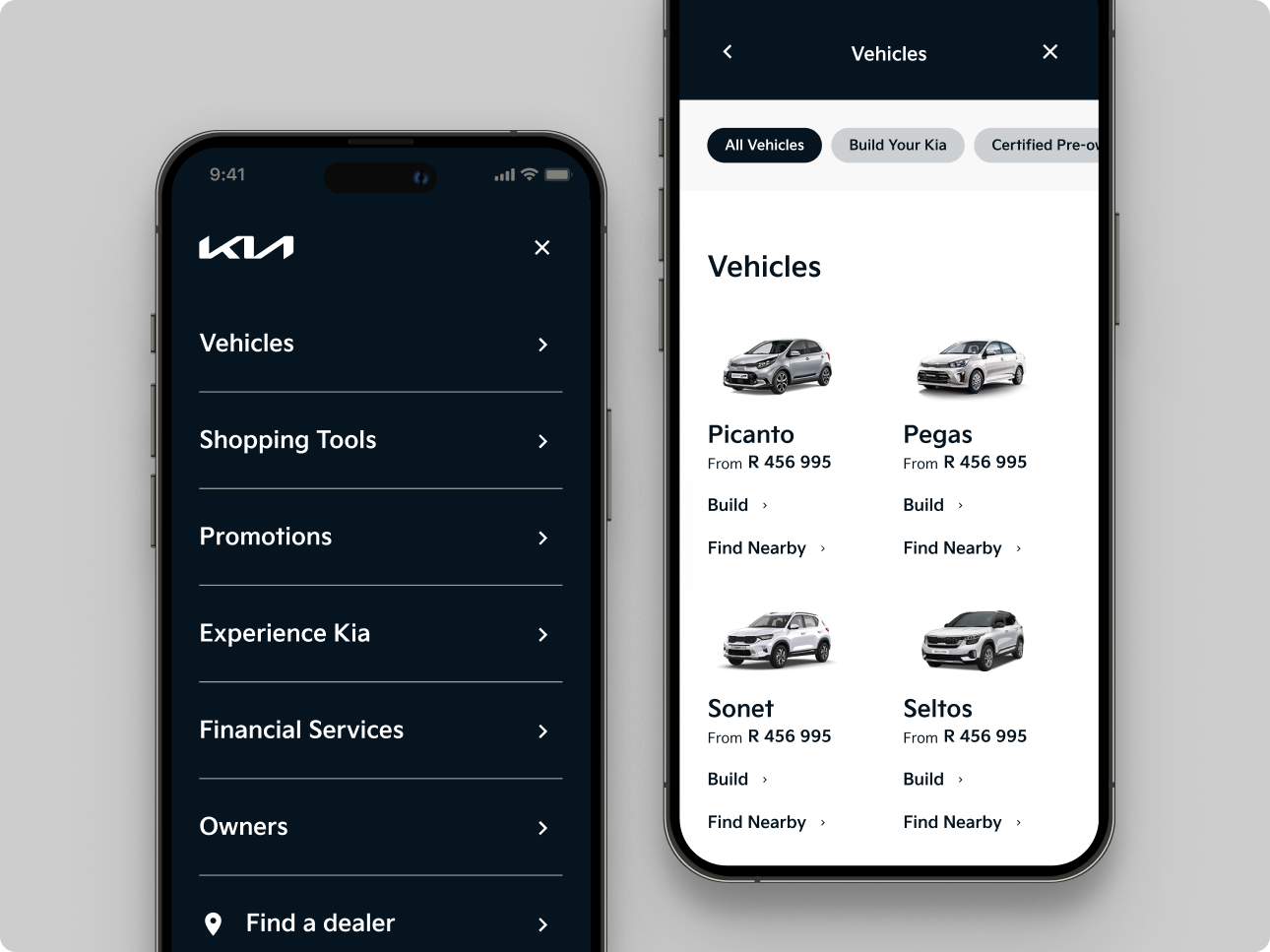 Kia, the world's fifth-largest vehicle manufacturer, operates in 172 countries with a strong presence in South Africa. The brand's digital presence was previously split between two websites - one for new vehicles and another for used cars and dealerships. Our mission was to unify these platforms to create a seamless customer experience.